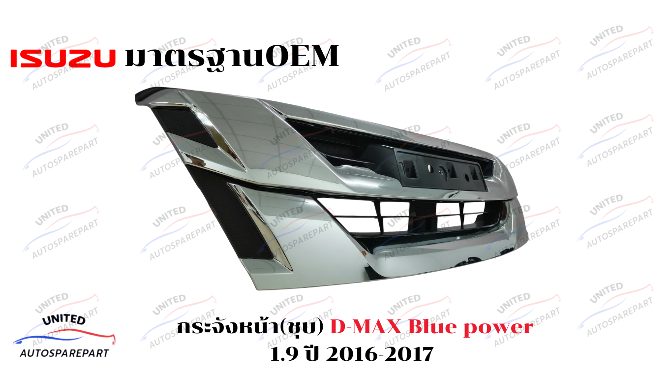 คืนความหล่อให้รถคุณด้วย กระจังหน้า(ชุบ) Isuzu D-max Blue power 1.9 โฉมปี 2016 – 2017 งาน OEM เกรดพรีเมียม ผลิตจากโรงงานที่ได้มาตรฐาน วัสดุคุณภาพสูง ทนทาน ยืดหยุ่นได้ดี และติดตั้งได้อย่างพอดีเป๊ะโดยไม่ต้องดัดแปลงตัวรถ!