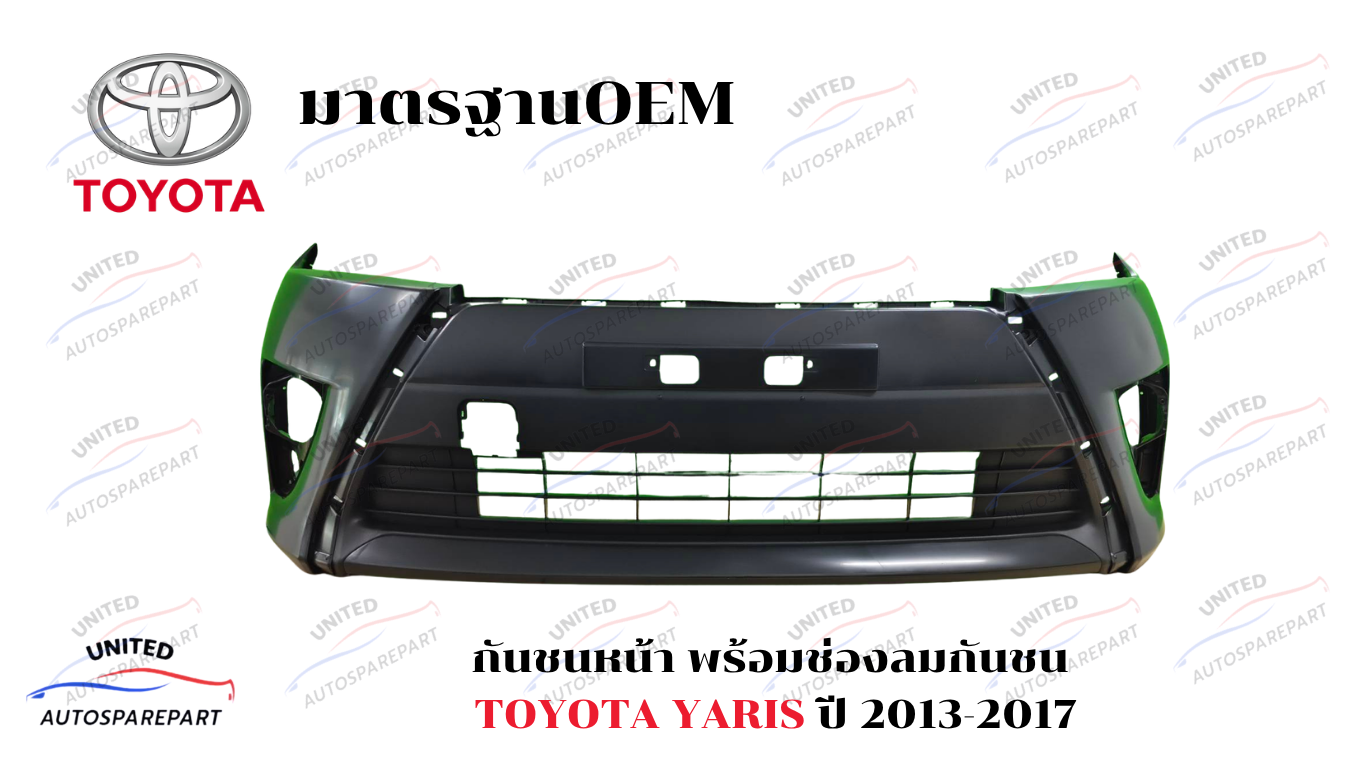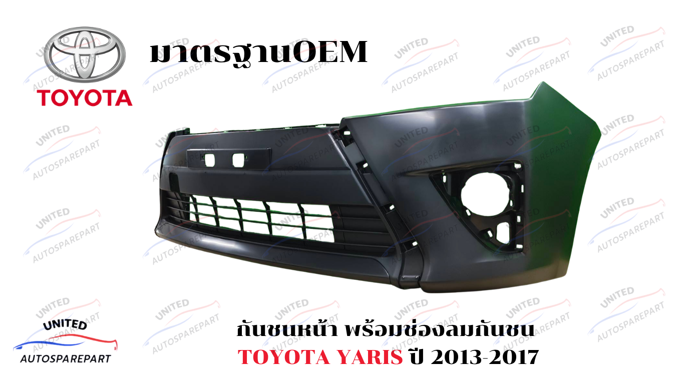 คืนความหล่อให้รถคุณด้วย กันชนหน้าพร้อมช่องลมกันชน Toyota Yaris โฉมปี 2013 – 2017 งาน OEM เกรดพรีเมียม ผลิตจากโรงงานที่ได้มาตรฐาน วัสดุคุณภาพสูง ทนทาน ยืดหยุ่นได้ดี และติดตั้งได้อย่างพอดีเป๊ะโดยไม่ต้องดัดแปลงตัวรถ!
