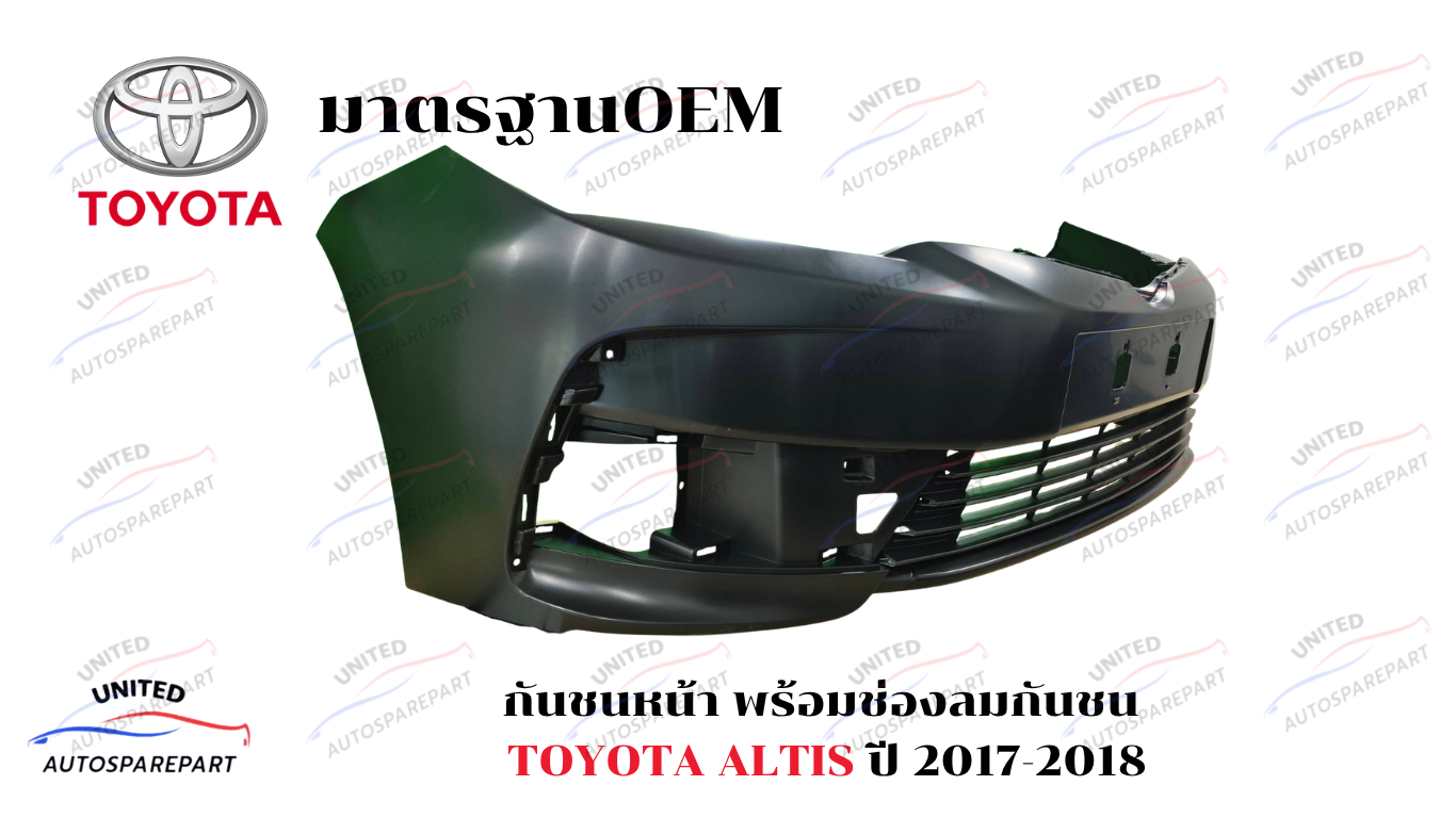 คืนความหล่อให้รถคุณด้วย กันชนหน้าพร้อมช่องลมกันชน Toyota Altis โฉมปี 2017 – 2018 งาน OEM เกรดพรีเมียม ผลิตจากโรงงานที่ได้มาตรฐาน วัสดุคุณภาพสูง ทนทาน ยืดหยุ่นได้ดี และติดตั้งได้อย่างพอดีเป๊ะโดยไม่ต้องดัดแปลงตัวรถ!