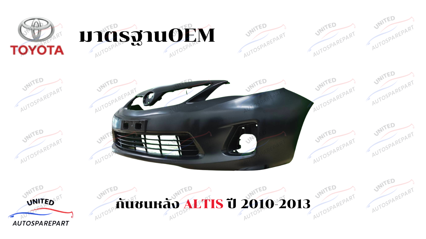 คืนความหล่อให้รถคุณด้วย กันชนหน้า Toyota Altis โฉมปี 2010 – 2013 งาน OEM เกรดพรีเมียม ผลิตจากโรงงานที่ได้มาตรฐาน วัสดุคุณภาพสูง ทนทาน ยืดหยุ่นได้ดี รองรับการทำสีและติดตั้งได้อย่างพอดีเป๊ะโดยไม่ต้องดัดแปลงตัวรถ!